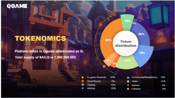 $AILQ 代币是 LittleQ 体验的核心,是 QGame 平台的主要代币。通过300万美元的融资成功和估值3000万美元的市场预估,游戏分配了10亿代币供应量的4%,即120万美元,用于空投奖励。已有大约10,000名参与者,每位玩家每天仅需投入30分钟,即可赚取约120美元。