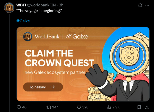 据项目聚合平台Galxe最新报道,前苹果开发者、现任Metamask核心安全人员Smith Samuel(SS)发布了他的最新稳定币项目——WBFI(WorldBank Finance)。该项目目前已在Galxe平台上线,并开启了社区招募活动。